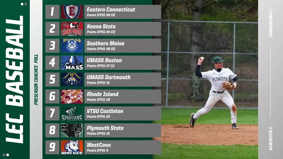 PROVIDENCE, R.I. – The Plymouth State University baseball team was picked to finish eighth in the Little East Conference (LEC) Preseason Coaches’ Poll, which was released Friday.